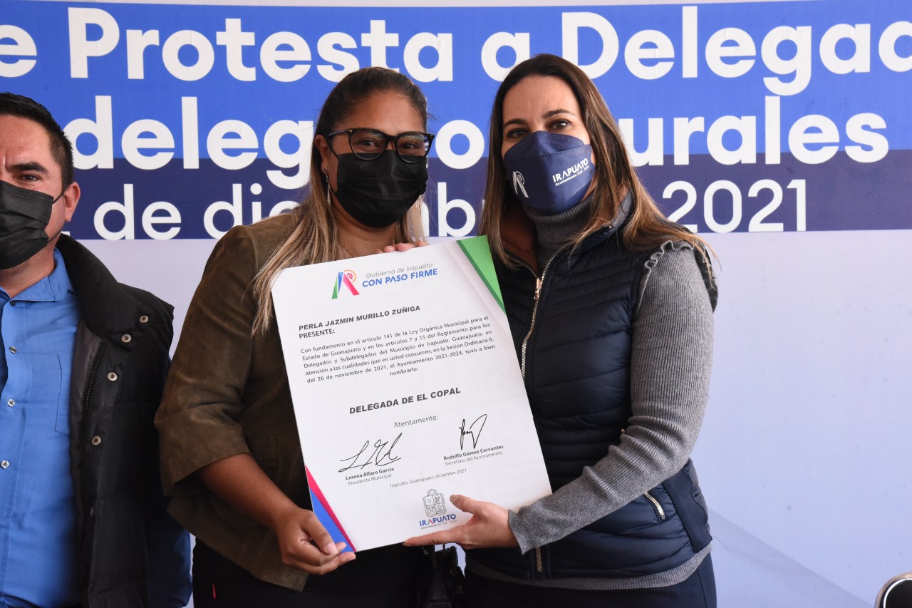 Durante la toma de protesta, Lorena Alfaro García, presidenta municipal, pidió a las y los delegados trabajar unidos para lograr el progreso de sus localidades, así como ser solidarios con el prójimo e impulsar programas en beneficio de las y los irapuatenses.