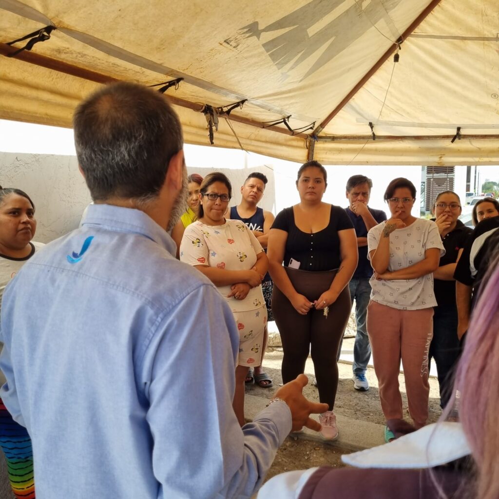 Irapuato Gto. 25 de abril 2023.- Personal de la Junta de Agua Potable, Drenaje, Alcantarillado y Saneamiento de Irapuato (Japami), se reunió con vecinas y vecinos del fraccionamiento Expo Fresas, a fin de dar a conocer las acciones provisionales para el abastecimiento del agua en sus viviendas.