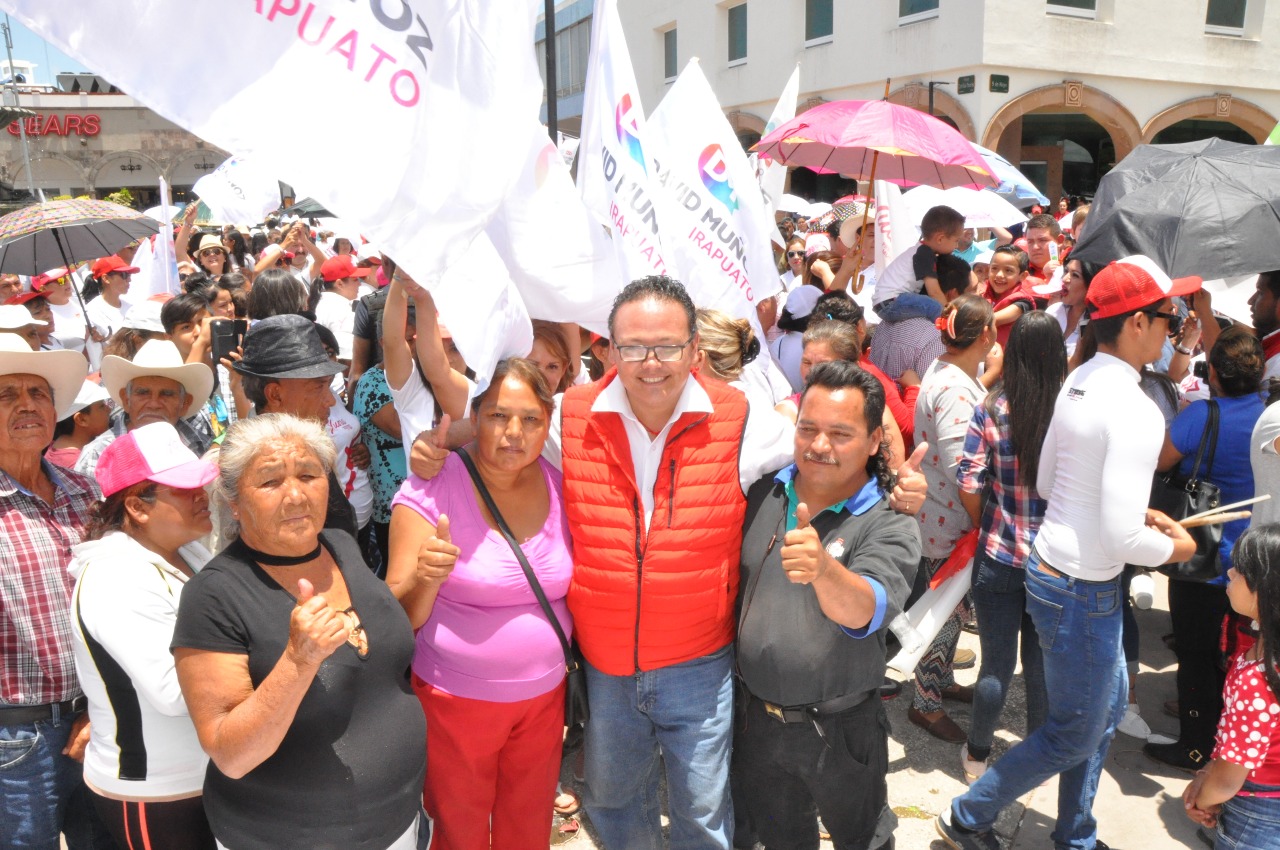 Cientos de personas se concentraron en el centro de Irapuato para mostrar de manera espontánea su apoyo al candidato; familias completas se acercaron para estrechar su mano o abrazarlo como una muestra de la voluntad que se reflejará el primero de julio en las urnas a favor de David Muñoz.