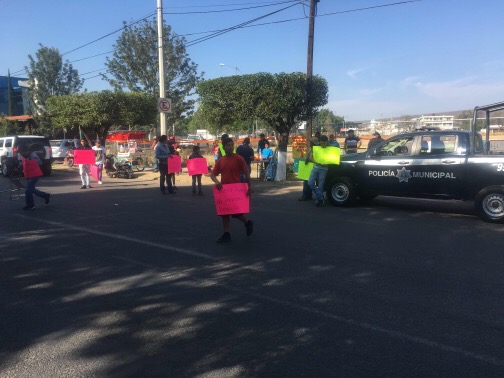 Al parecer la Dirección de Ordenamiento Territorial les rechazó el permiso para operar en un terreno particular que rentaron para efecto de continuar en su actividad mercantil. En el lugar hay presencia de policías municipales.