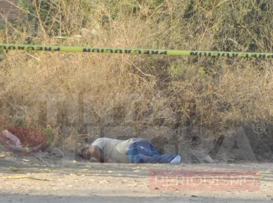 En cadáver estaba a un lado del camino terracero casi esquina con la calle Juárez. Agentes de a investigación criminal y peritos trabajan en el lugar para establecer la mecánica de este homicidio.