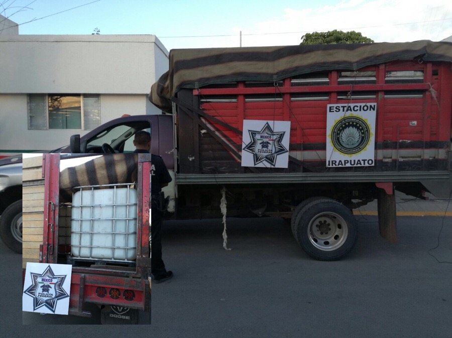 Irapuato.-Tripulantes de una camioneta donde transportaba hidrocarburo de procedencia «escaparon» de policías federales que les marcaron el alto dejando abandonada la unidad motriz.
