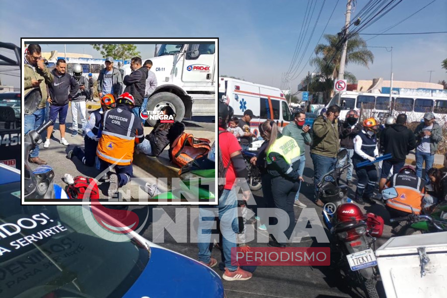 IRAPUATO.- Un matrimonio y su menor hijo de tres años que se dedican a ganarse la vida con moto envío de alimentos fueron atropellados la mañana de este viernes en bulevar Solidaridad.