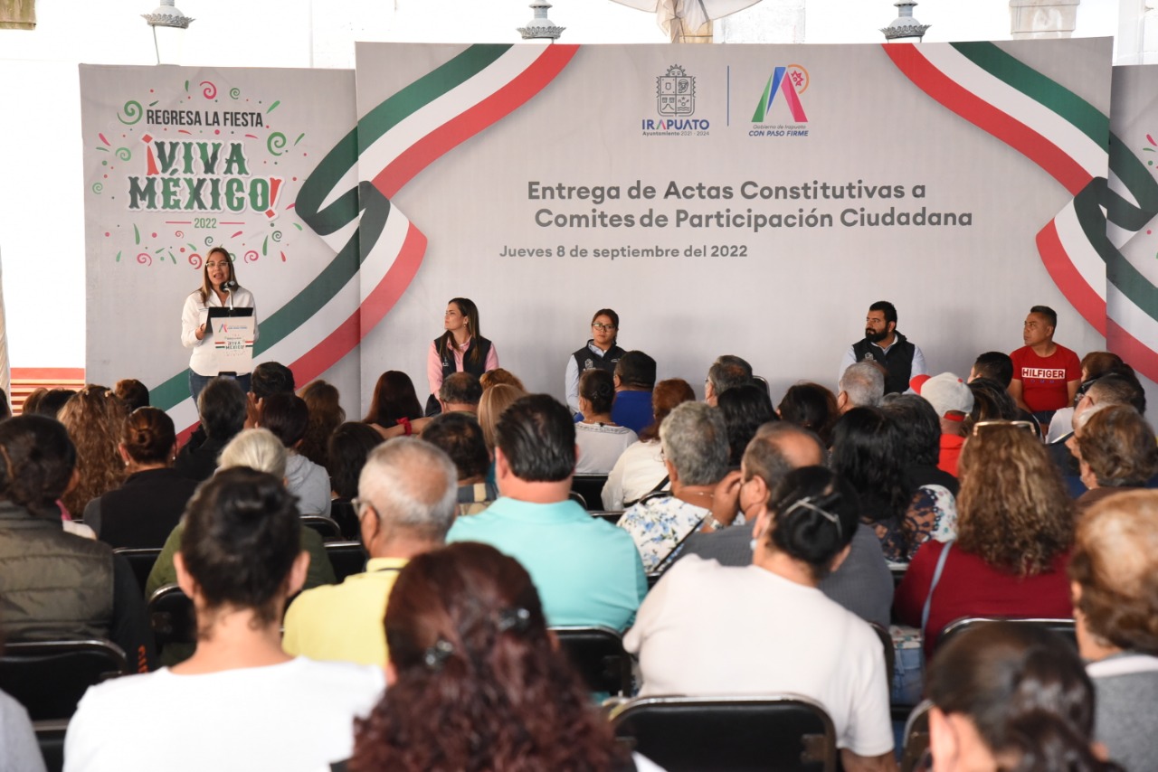 Irapuato, Gto. 09 de septiembre del 2022.- Con la finalidad de incentivar el trabajo coordinado entre las y los irapuatenses, se entregaron 43 actas constitutivas a integrantes de los Comités de Participación Ciudadana de diferentes colonias de nuestro municipio.