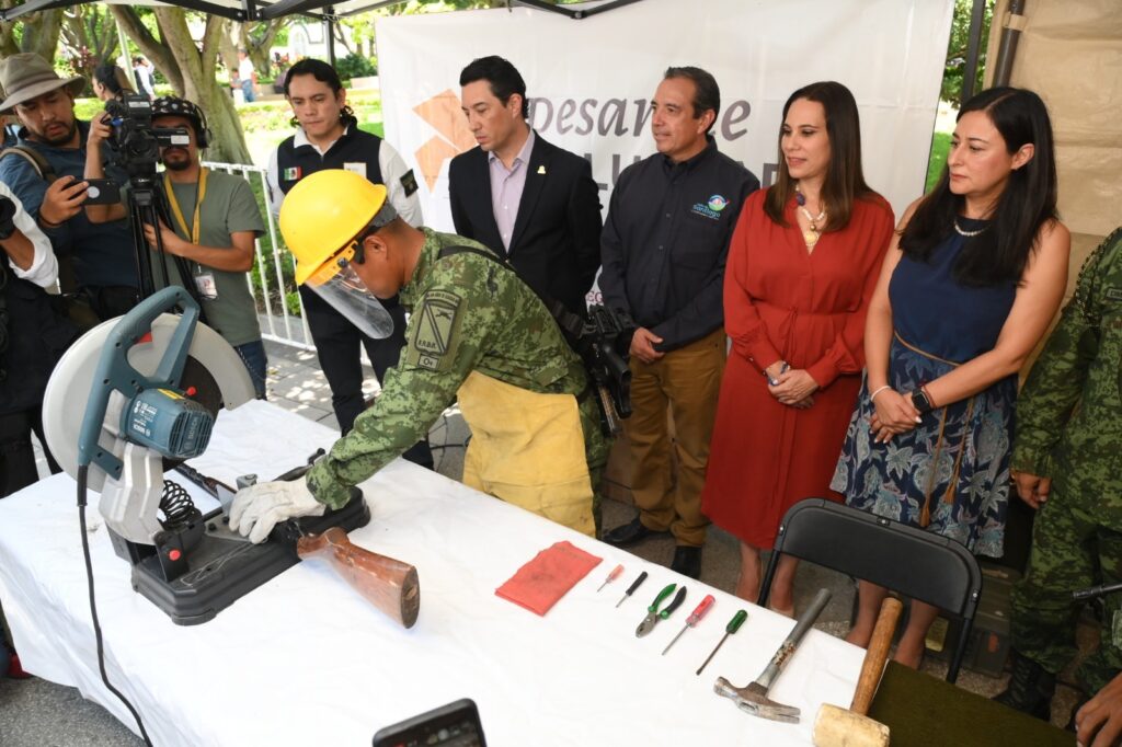 Lorena Alfaro García, presidenta municipal, destacó que con este ejercicio se contribuye a la construcción de entornos de paz para la ciudad, pues se crea conciencia entre la ciudadanía sobre el peligro que representan las armas en los hogares.