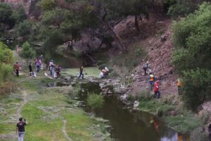IRAPUATO, GTO., JUNIO 10 DE 2018.-En una acción conjunta entre sociedad y gobierno este día se empezó a concretar el proyecto de rescate del Río Silao. Desde temprana hora más de 300 personas en brigadas de colonos de Lomas de Españita, Bernardo Cobos, Jardines de San Antonio, Vista Hermosa, estudiantes del CBETIS 65, jóvenes del Instituto Municipal de la Juventud y cuadrillas de la Dirección General de Servicios Municipales a través de su área de Aseo Municipal, realizaron labores de limpieza en el cauce de este afluente.