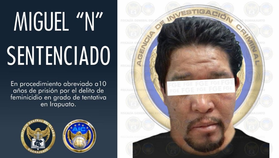 Irapuato, Gto. 02 de marzo de 2021.- En procedimiento abreviado la Fiscalía General del Estado (FGE), a través del trabajo de investigación desarrollado por el Centro de Justicia para las Mujeres (CJM), obtuvo sentencia condenatoria de 10 años de prisión para Miguel “N”, culpable del delito de feminicidio en grado de tentativa en agravio de su pareja.