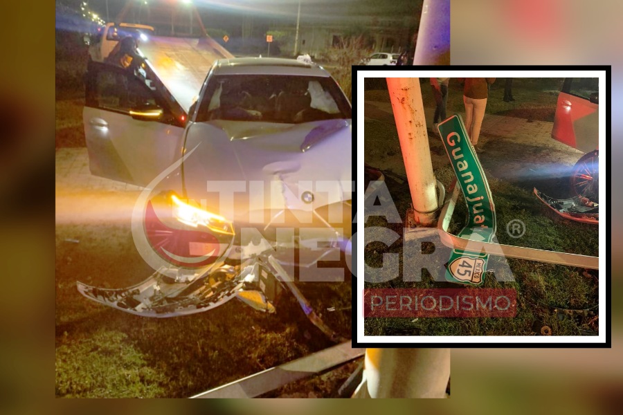 Al llegar a la intersección con avenida Guerrero perdió el control de la unidad motriz, se subió a la isleta y se impactó en contra de un poste metálico con señalización de «Guanajuato», «Inforum», «León».