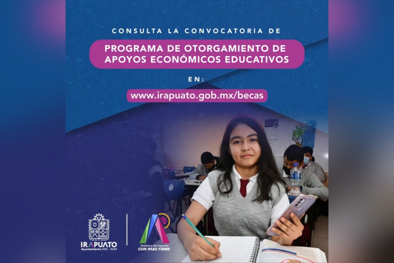 Irapuato, Gto. 30 de mayo del 2022.- La convocatoria del programa de Apoyos Económicos Educativos ya está disponible para las y los estudiantes del municipio en irapuato.gob/becas.