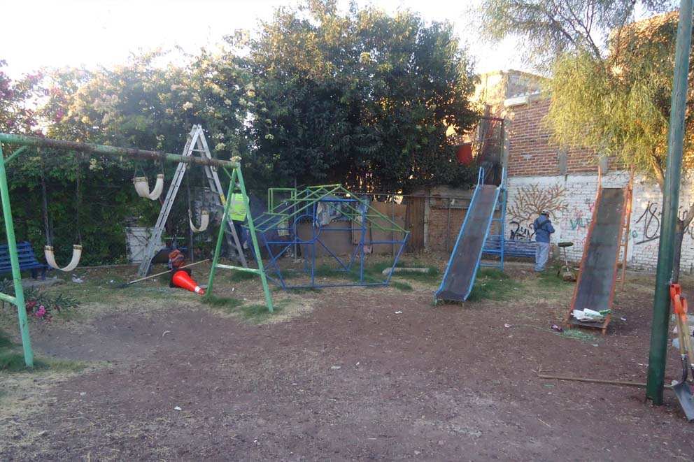 Una de las colonias más recientes fue la Primera Sección del Fraccionamiento Colón, donde se realizaron acciones integrales como el cambio de luminarias, mantenimiento del parque en la calle “Vicente Yáñez” y limpieza sobre el bordo del río Guanajuato y otras áreas del sector.
