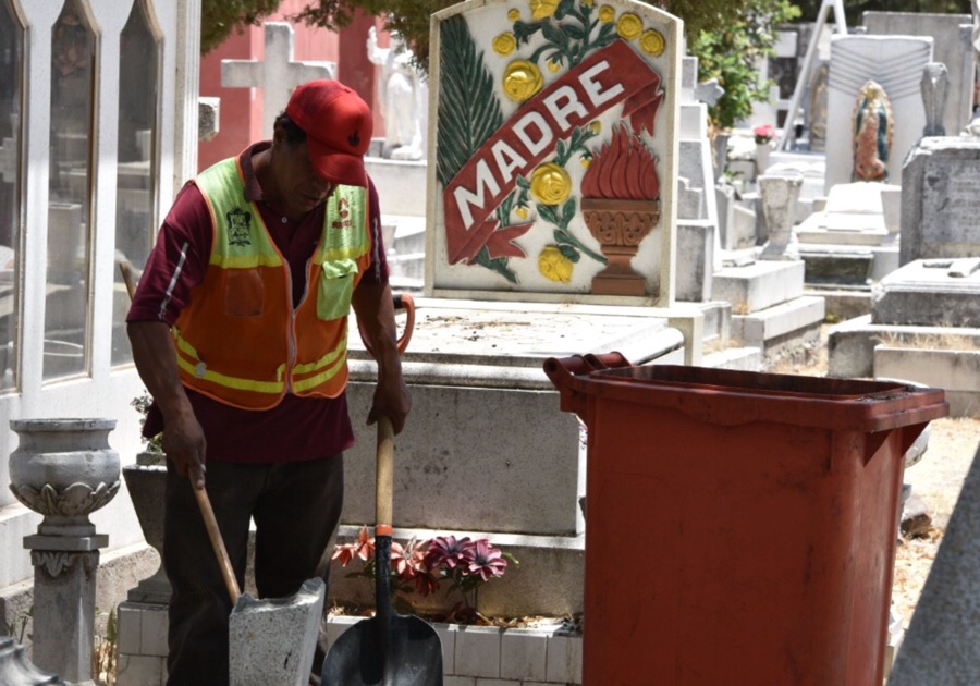 El funcionario pidió a los visitantes depositar la basura en los botes de recolección ubicados en pasillos principales del recinto, a fin de evitar contaminación y cuidar los espacios de uso común, mejorando con ello, la imagen del campo santo.