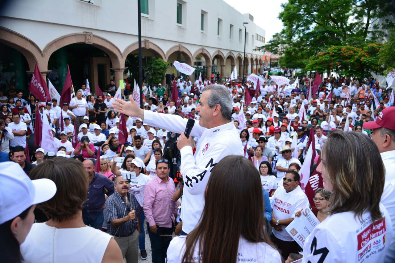 “Por eso amigas y amigos irapuatenses”, clamó el candidato, “vamos este 1 de julio a votar por la coalición. Vamos a buscar el cambio de Irapuato… Irapuato no merece vivir lo que está viviendo”.