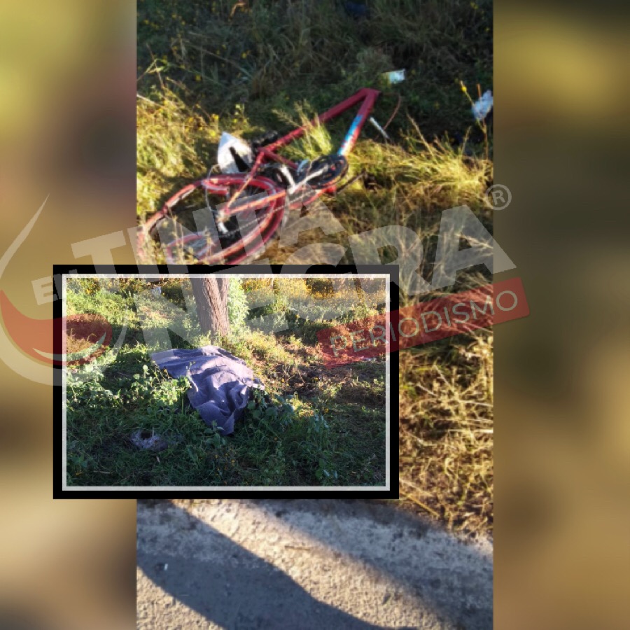 El hombre conducía una bicicleta roja cuando fue impactado por un vehículo. El jornalero salió proyectado y su cuerpo quedó sobre los pastizales.