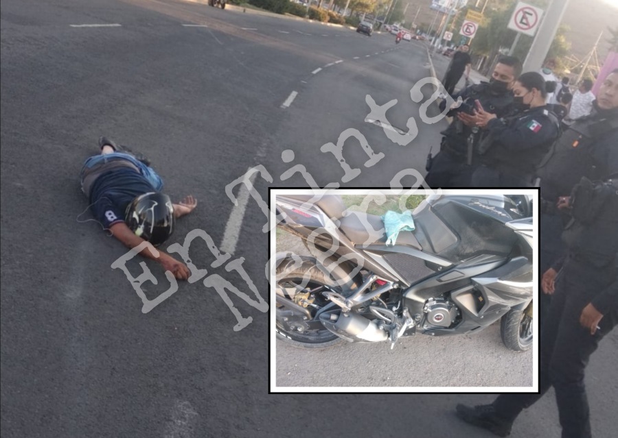 Irapuato, Gto; 16 de mayo de 2021.- El conductor de una motocicleta murió luego de derrapar varios metros, a pesar de portar el casco de protección.