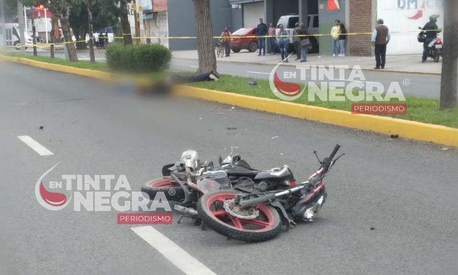 Irapuato.- Un hombre de aproximadamente 25 años de edad que conducía una motocicleta falleció tras derrapar sobre el bulevar San Roque frente a conocida tienda departamental.