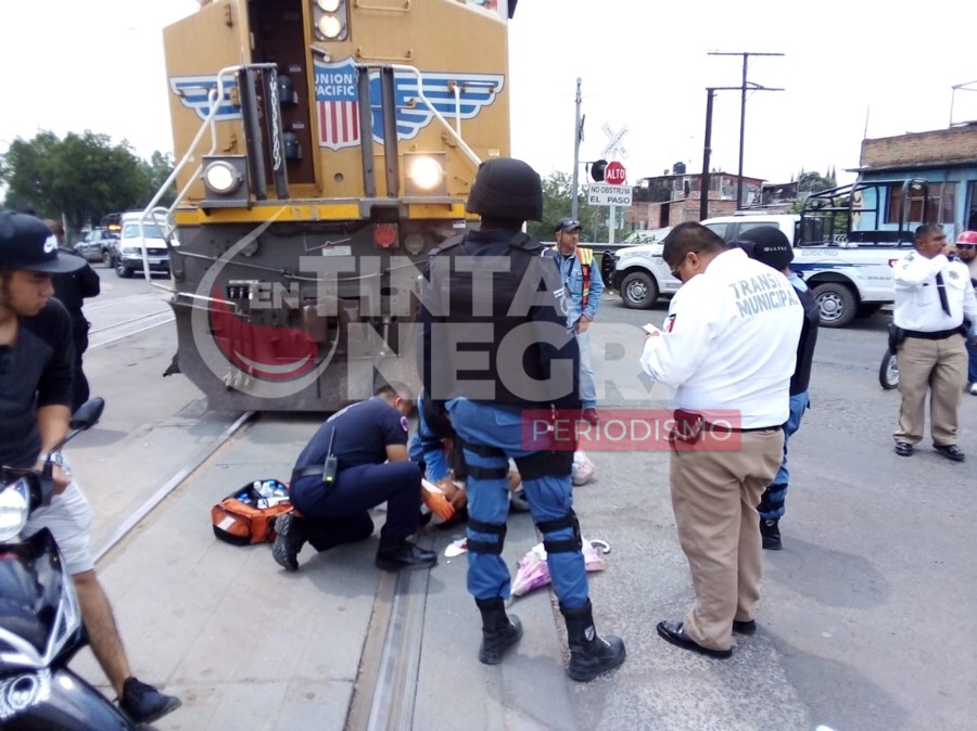 Irapuato.-Con lesiones de consideración en la cabeza así como en varias partes del cuerpo, fue trasladada al Hospital General una mujer, luego de que fuera arrollada por el tren a su paso en la Calzada de Guadalupe.