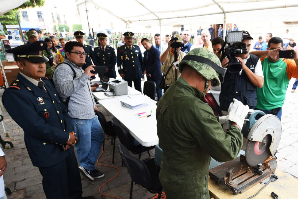 IRAPUATO, GTO. – MARTES 17 DE JULIO DE 2018.- El Alcalde Francisco Xavier Alcántara Torres, encabezó junto al Comandante de la XVI Zona Militar, General de Brigada Bernardo Ramírez García, el inicio de la campaña Canje de Armas 2018, que permanecerá inicialmente en el jardín principal y con posterioridad será itinerante y acudirá a colonias como Las Américas, La UCOPI y Purísima del Jardín.