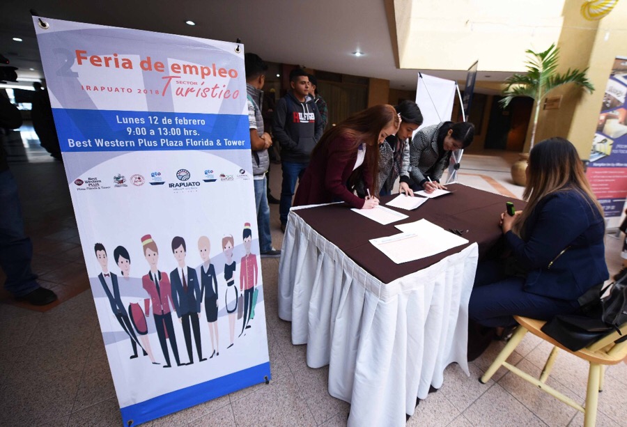 Irapuato, Gto., febrero 12 de 2018.- Con la finalidad de crear oportunidades de empleo y desarrollo en Irapuato, se realizó la segunda edición de la Feria del Empleo del Sector Turístico con la participación de 30 empresas del sector y la oferta de 150 puestos de trabajo.
