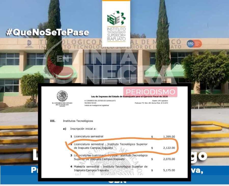El costo por inscripción en el ITESI de $2122.00 lo contempla la Ley de Ingresos para el Estado de Guanajuato en su artículo 25 Fracción III, Inciso A para el ejercicio fiscal 2020 aprobada por El Congreso del Estado a finales del año pasado.