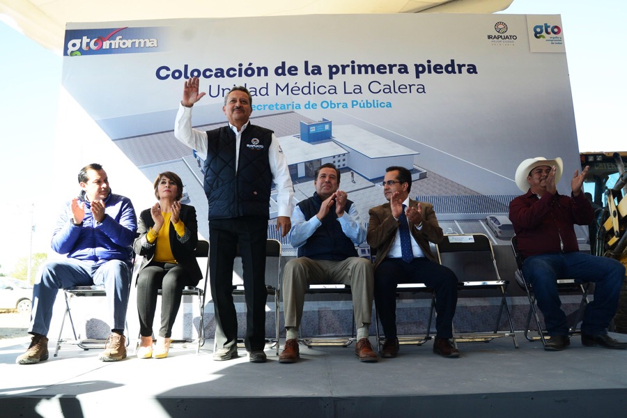 IRAPUATO, GTO., ENERO 9 DE 2018.-En gira de trabajo para poner la primera piedra de las Unidades Médicas en las comunidades La Calera, Lo de Juárez y el Centro de Atención Integral en Servicios Esenciales de Salud (CAISES) en la colonia Galaxia el Naranjal, a solicitud del Presidente Municipal Ricardo Ortiz Gutiérrez, el Gobernador del Estado Miguel Márquez Márquez ofreció construir, este mismo año, otra Unidad Médica en el poblado Venado de Yóstiro.
