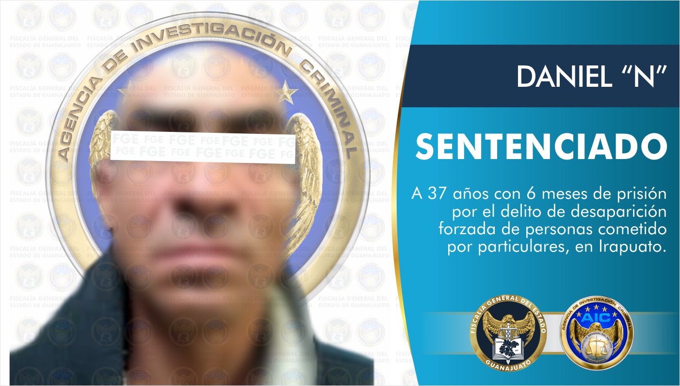 La Fiscalía acreditó el delito de desaparición forzada de personas cometido por particulares, previsto y sancionado en la Ley General en Materia de Desaparición Forzada y Desaparición cometida por Particulares y del Sistema Nacional de Búsqueda de Personas, y la plena responsabilidad de DANIEL “N”, en la comisión de este, por lo que un Juez le impuso una sentencia de 37 años y 6 meses de prisión.