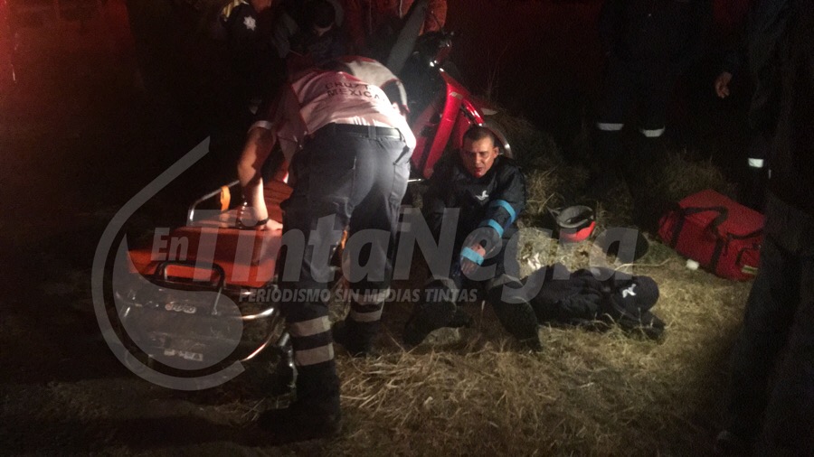 Juan Estrada Galván, de 40 años conducía una motocicleta marca Italika color roja cuando ocurrió el percance. Al derrapar quedó herido en el acontamiento de la carretera  y ensangrentado del rostro.