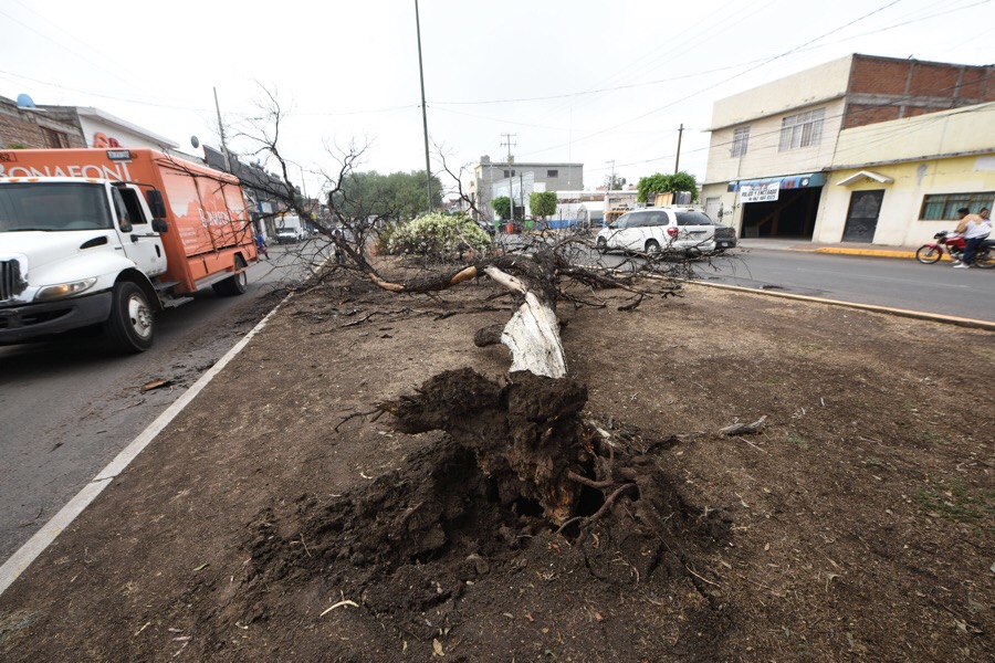 Guerrero Guerrero anticipó que una vez normalizada la temporada de lluvias del presente ciclo, la Dirección de Ecología y Medio Ambiente, coordina acciones conjuntas con Protección Civil Municipal, para realizar las revisiones y operativos permanentes por zona arboladas, a fin de evitar riesgos a la población con árboles que pudieran venirse abajo, como éste pirúl que desafortunamente tenía ya las raíces podridas y ante el exceso de humedad se derribó por condiciones naturales.