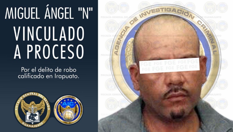 Irapuato, Gto. 06 de agosto de 2020.- En audiencia inicial por orden de aprehensión, la Fiscalía General del Estado imputó a un hombre por robo calificado y el Juez de la causa determinó su vinculación a proceso con medida cautelar de prisión preventiva.
