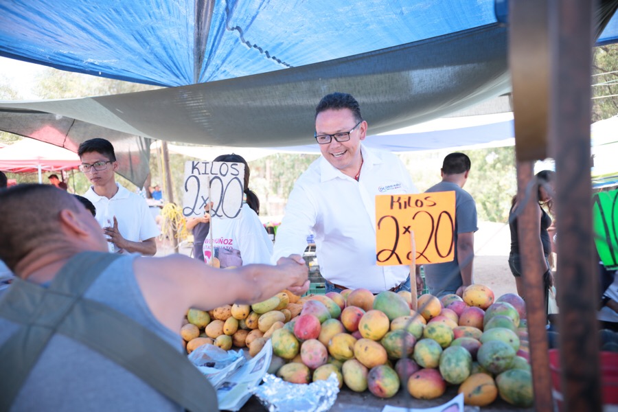 El plan 5-25-3 conformado por cinco objetivos, veinticinco propuestas y tres compromisos, fue presentado por el candidato David Muñoz a los comerciantes y clientes del tianguis de la colonia Los Cobos y del Mercado Reforma