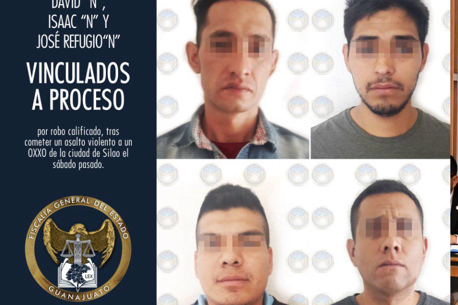 Al término de la audiencia, se resolvió que los inculpados, identificados como Alejandro de 34 años, David de 21 años, Isaac de 26 años y José Refugio de 37 años, todos domiciliados en la ciudad de Irapuato, sean vinculados a proceso y permanezcan en prisión preventiva por el tiempo en que se desarrolla la causa penal y son sentenciados.