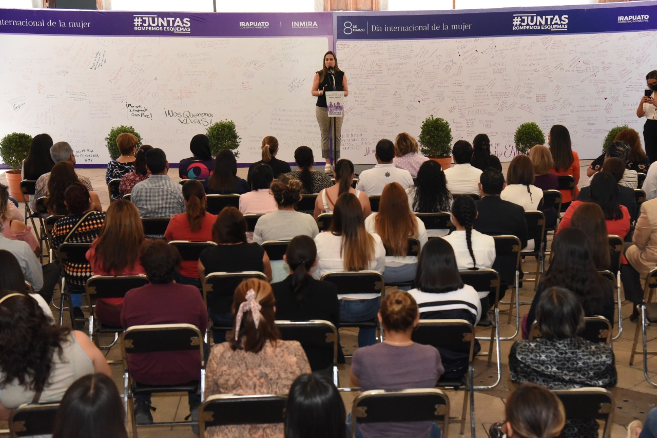 Irapuato, Gto. 31 de marzo del 2022.- Con el cierre del Mural de Expresión ‘Juntas Rompemos Esquemas’, se compartieron con la ciudadanía los mensajes de apoyo, motivación, denuncias y peticiones de apoyo que las mujeres irapuatenses plasmaron en mamparas.