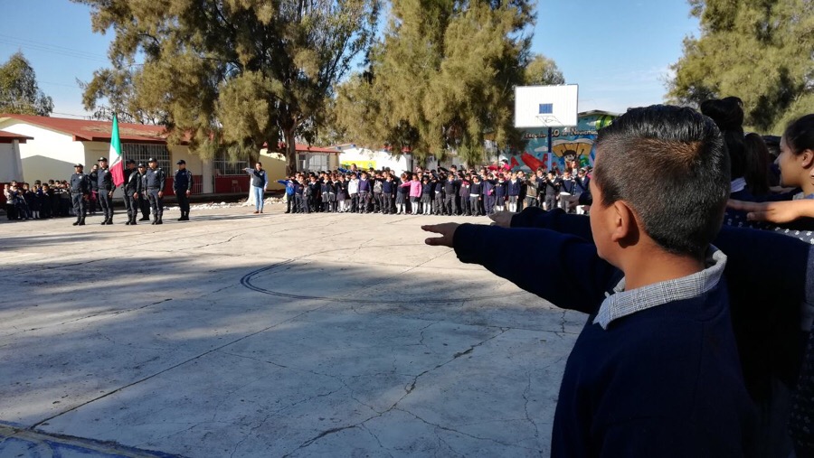 Irapuato, Gto a 12 de febrero de 2018.- La Secretaría de Seguridad Ciudadana, a través de la dirección de Proximidad Ciudadana, llevó a cabo en la comunidad de San Nicolás Temascatío su acto cívico de honores a la bandera, donde se pretende inculcar y arraigar el amor al país, a su ciudad y su comunidad desde una perspectiva preventiva.