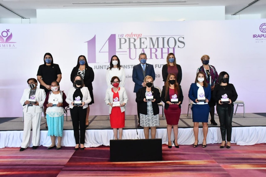 Irapuato, Gto. 09 de diciembre del 2020.- En reconocimiento a ocho mujeres destacadas de la ciudad, el Gobierno Local a través del Instituto Municipal de las Mujeres Irapuatenses (Inmira), entregó los premios UARHI durante la décimo cuarta edición de estos galardones.