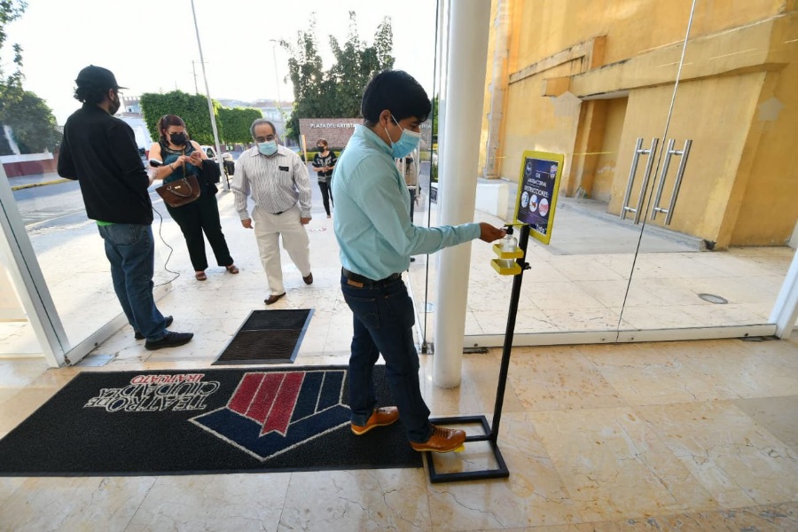 Irapuato, Gto. 20 de octubre del 2020.- Con la aplicación de protocolos sanitarios estrictos, ciudadanos regresaron a disfrutar de los espectáculos en el Teatro de la Ciudad.