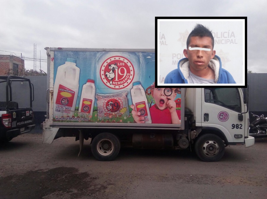 Irapuato.-Un hombre fue detenido por elementos de la Policía Municipal minutos después de apoderarse de una camioneta con productos lácteos, cuyo conductor se encontraba repartiendo en la colonia Lupita.