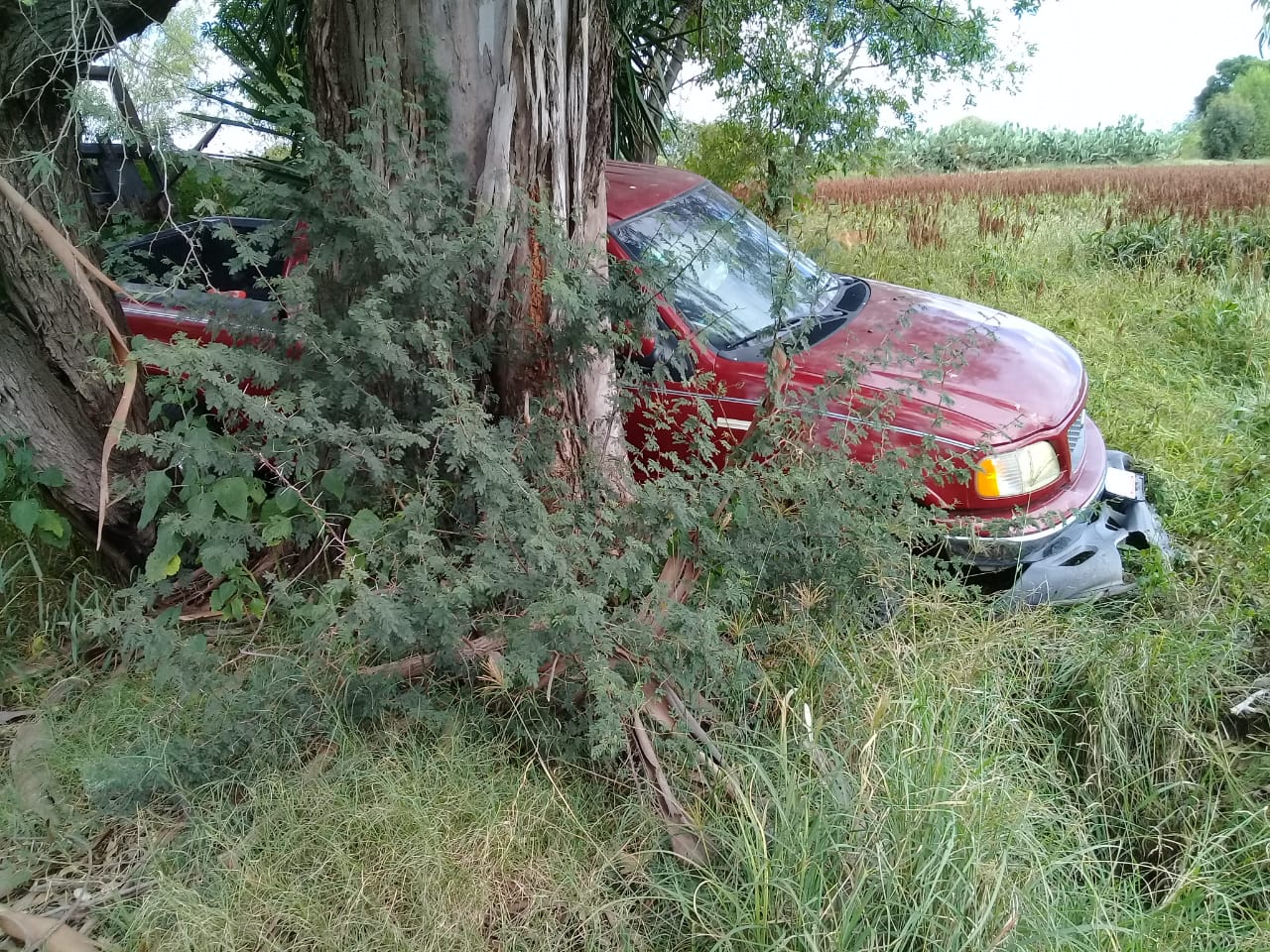 Estas personas viajaban abordo de una camioneta color rojo, la cual volcó estrellándose contra el tronco de un árbol.