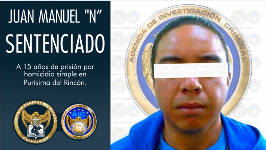 Purísima del Rincón, Gto. 28 de agosto de 2020.- Con las pruebas imputadas por el Agente del Ministerio Público de Litigación en contra de JUAN MANUEL “N” alias “El Bebé”, quien privó de la vida a una mujer, es condenado a pasar 15 años prisión por el delito de homicidio simple.