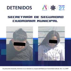 POLICÍA MUNICIPAL DE IRAPUATO DETIENE APAREJA SEÑALADA POR POSIBLES ROBOS ATIENDAS DE CONVENIENCIA