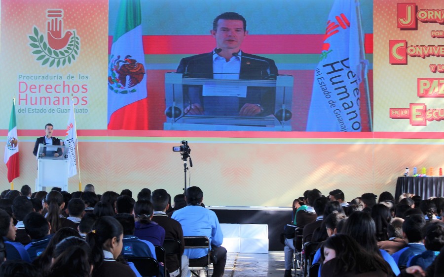 Irapuato, Guanajuato, a 27 de febrero de 2020.- La Secretaría de Educación de Guanajuato en coordinación con la Procuraduría de los Derechos Humanos del  Estado de Guanajuato, llevaron a cabo en la Escuela Secundaria Técnica No. 32 de Irapuato el evento denominado: “Jornadas por la Convivencia y la Paz en las Escuelas”.