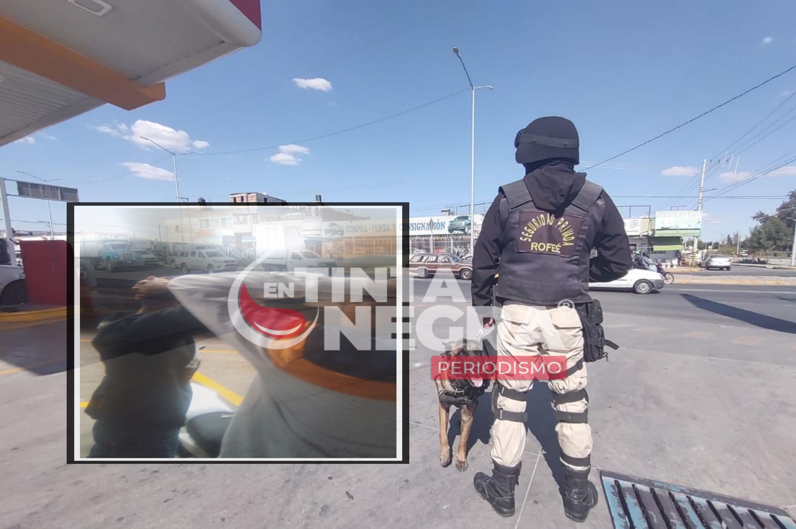 Tras tratar de amagar a los despachadores, el elemento de Seguridad Privada ROFEE del grupo Unidad Kaneros, activo al agente canino Max.