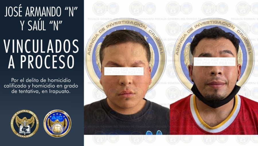 Agentes de Investigación Criminal cumplimentaron las órdenes de aprehensión en contra de José Armando “N”, por los delitos de homicidio calificado y homicidio en grado de tentativa, y a Saúl “N” por el delito de homicidio en grado de tentativa; en cuanto al delito de homicidio en agravio de Antonio “N” quien falleció en el hospital, y por el delito de homicidio en grado de tentativa en agravio de dos hombres, a quienes les provocaron lesiones de las que ponen en peligro la vida.
