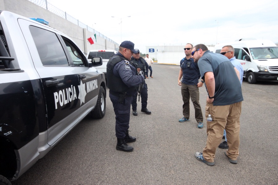 Irapuato, Gto a 5 de noviembre de 2018.- La Secretaria de Seguridad Ciudadana municipal recibió a un grupo de policías de Carolina del Norte, Estados Unidos, quienes visitaron las diferentes instalaciones de la corporación con el objetivo de conocer y entender cómo se maneja la seguridad pública en Irapuato. Como anfitrión, el secretario de Seguridad Ciudadana, Pedro Alberto Cortés Zavala, les explicó la función que realiza la Academia de Seguridad Pública para la capacitación y profesionalización constante que recibe todo el personal, en qué se capacitan y cómo se evalúa a la policía. En el Centro de Comunicaciones (Cecom), los policías norteamericanos conocieron el funcionamiento del Sistema de Emergencias 911, la operatividad y conexión de las videocámaras de seguridad, la información para las intervenciones policiales en campo, plataformas digitales y la estructura general de la Secretaria. Mientras que en el Cipol, conocieron los gimnasios, áreas de juegos infantiles y la atención personalizada al policía y sus familias, que forma parte de la dignificación policial. “Es un grupo de policías que vienen a visitarnos, ellos quieren conocer la forma de trabajar de la policía de México, específicamente de la Policía de Irapuato, vienen con un enfoque de atención al migrante, quieren ver de qué manera trabajamos aquí para dar una buena atención a los paisanos en Estados Unidos, pero además conocer qué hacemos y cómo lo hacemos”, puntualizó el secretario. Al concluir su visita, la directora del programa “Iniciativa Latina” de The University of North Carolina, Lorena Patterson, mencionó que objetivo de la visita fue para conocer y entender cómo se maneja la seguridad pública y entender la cultura mexicana para atender a los migrantes que radican