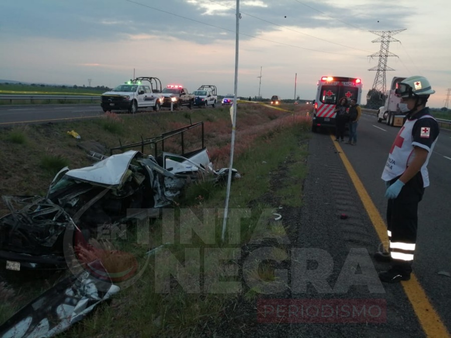 Irapuato. – Dos personas murieron y tres más resultaron lesionadas tras volcar el vehículo que tripulaban.