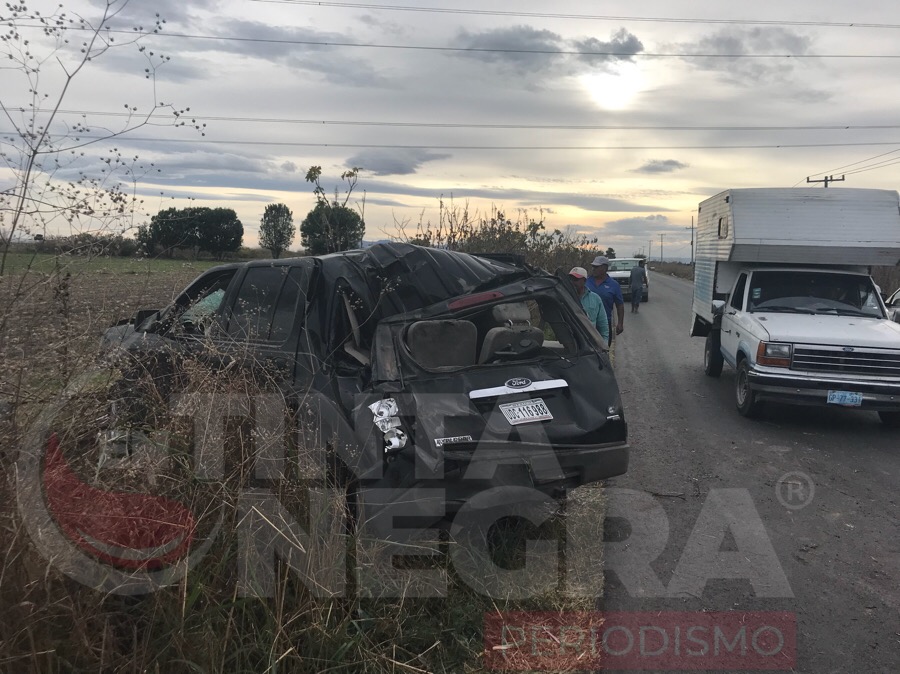 Irapuato.- Un hombre salvó su vida luego de volcar la camioneta que conducía la tarde de este viernes en la carretera Irapuato-Cuchicuato.
