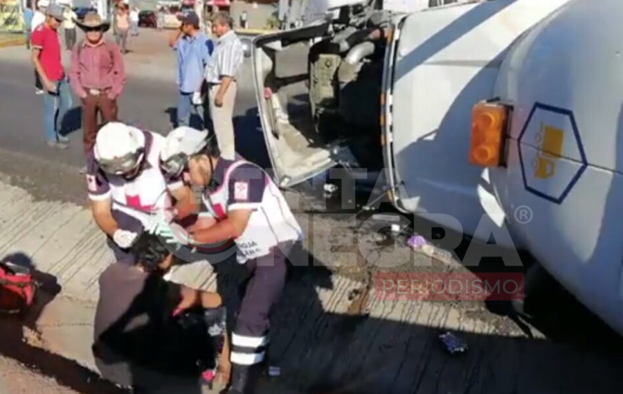 La volcadura se habría originado por el exceso de velocidad y la sobrecarga que traía la unidad motriz. Paramédicos de Cruz Roja llegaron al sitio para atender al chofer.