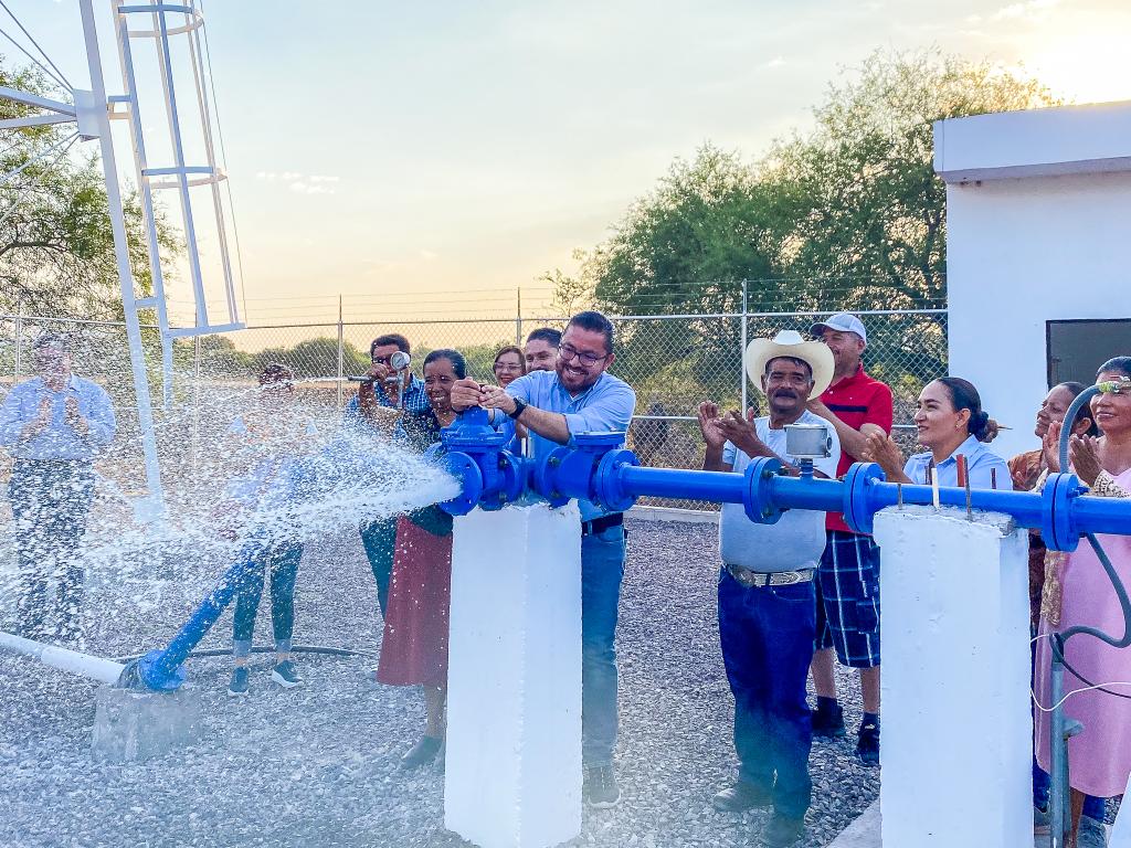 El alcalde Goyo Mendoza, Ayuntamiento y beneficiarios de la obra, pusieron en marcha este sistema, abriendo la válvula para que la red abasteciera de este servicio a todos en la comunidad, con lo que se simboliza así la entrega.