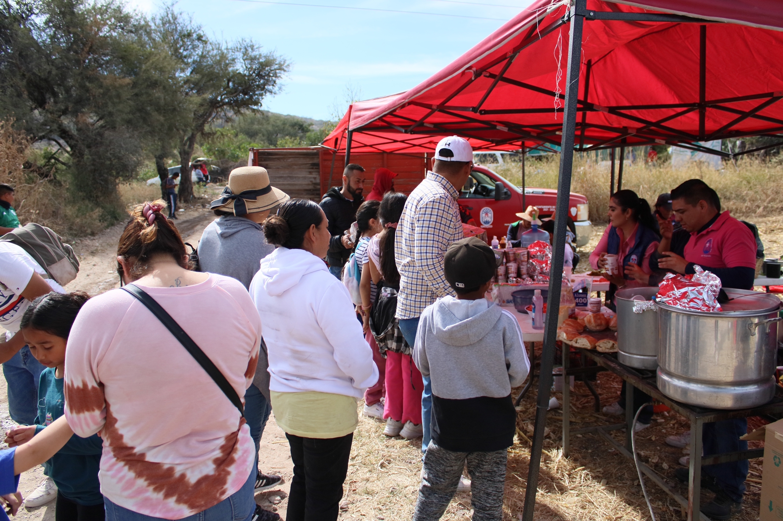 Este fin de semana, el equipo DIF Pénjamo, se ubicó en la Puerta del Gallo, La Sabina y Manuel Doblado, donde entregaron café, pan, Maruchan, pozole, tortas, naranjas, canela y agua.