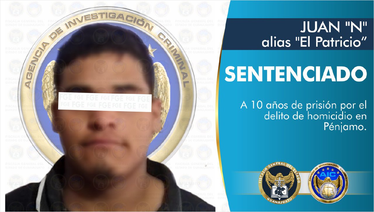 Pénjamo, Gto. 16 de septiembre de 2021.- JUAN “N” alias “El Patricio”, disparó con un arma de fuego a un hombre que se encontraba al exterior de un domicilio en la calle Marfil en el municipio de Pénjamo. La Fiscalía General del Estado a través de un agente del Ministerio Público mediante procedimiento abreviado, obtuvo que fuera condenado a 10 años en prisión por el crimen registrado el 26 de noviembre del año 2020.