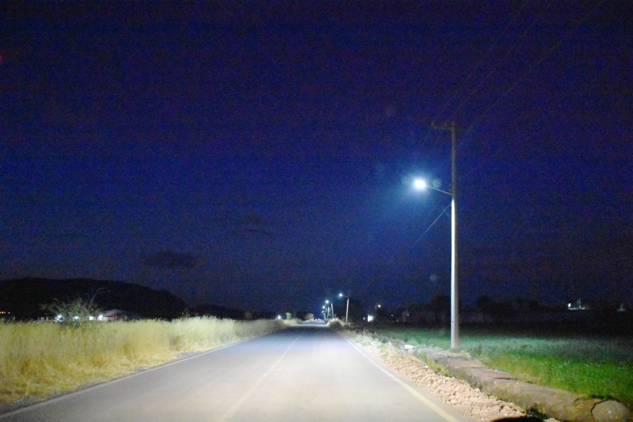 PÉNJAMO. – Luego de la petición de los habitantes de los ranchos Purísima de Ramírez y El Romeral, finalmente quedó listo el alumbrado del camino de la carretera federal a estas comunidades.