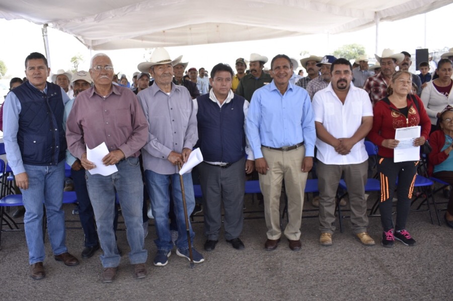 El Alcalde Juan José García, acompañado de Roberto Estrada Martínez, representante del Secretario José Francisco Gutiérrez Michel y el titular de Desarrollo Agropecuario, Lenin López, fueron los encargados de entregar los apoyos a los beneficiarios.